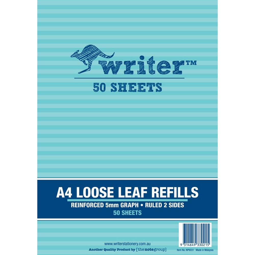Writer Binder Refills A4 5mm Graph Reinforced Pack of 50