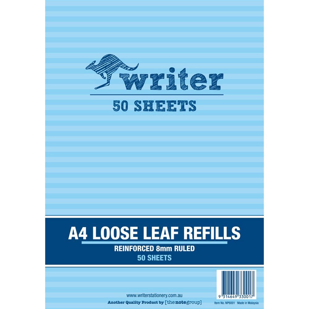 Writer Binder Refills A4 8mm Ruled Reinforced Pack of 50