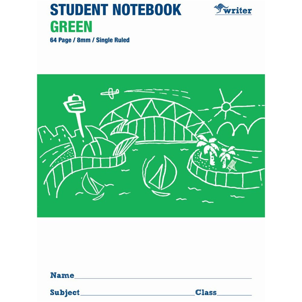 Writer Student Notebook 175x250mm 8mm Single Ruled 64 Pages Green